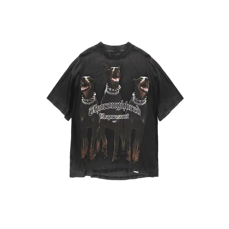 Represent Two-Tone Letter Print Loose Casual Velvet Padded Hooded Sweatshirt