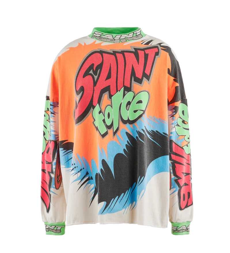 Saint Michael Five-Pointed Star English Letter Long Sleeve T-Shirt