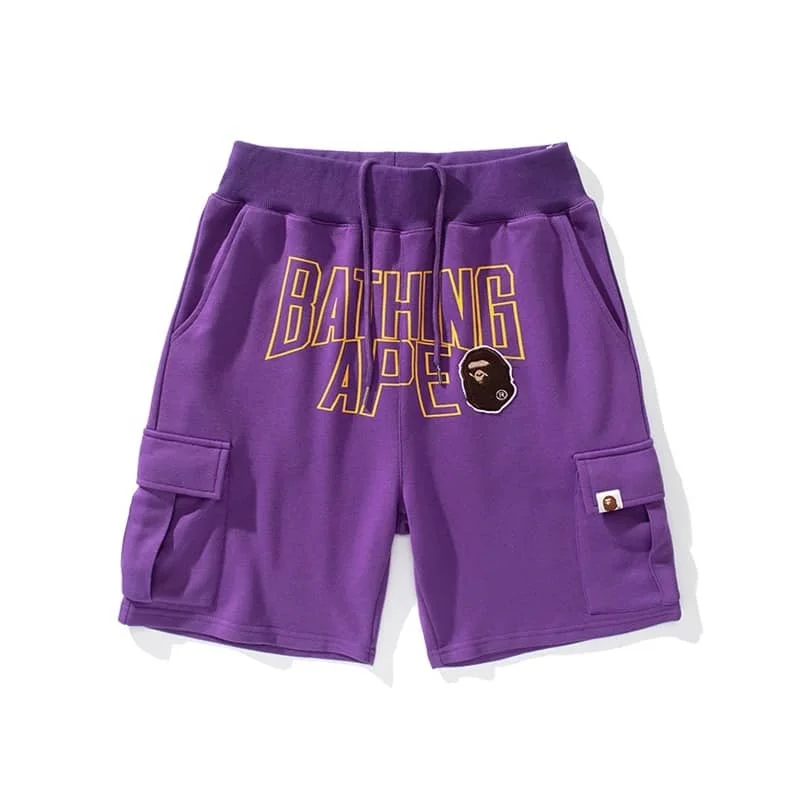 APE Embroidered Patch Letter Pocket Cotton Terry Shorts Casual Men Style 2
