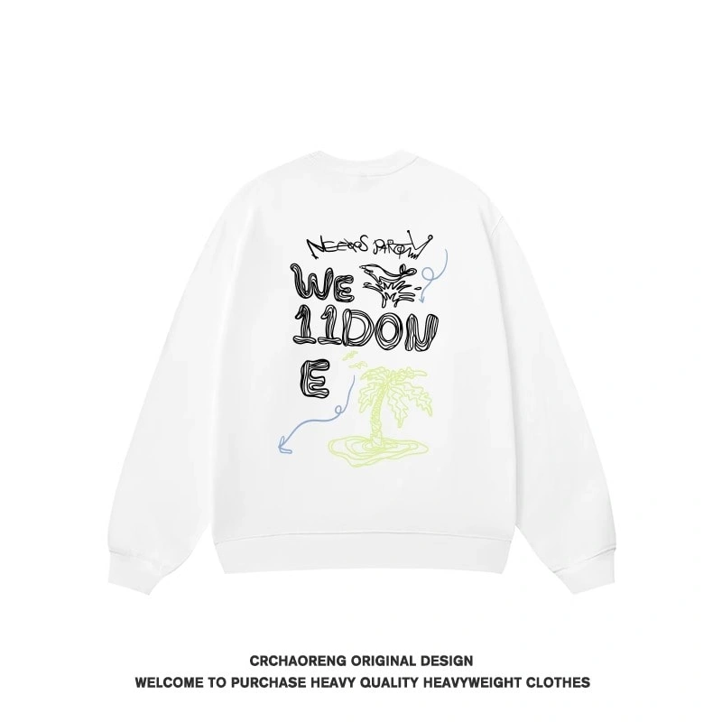 We11done Konne Crew Neck Sweatshirt Men Retro Trend Brand Fleece No Hood Pullover High Street Long Sleeve Shirt