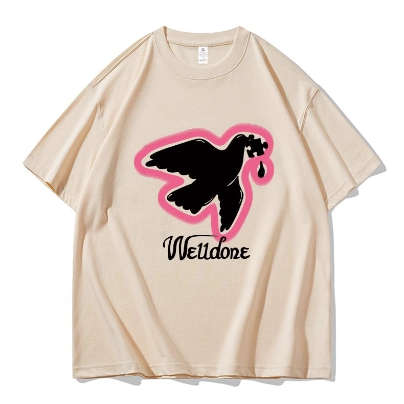 We11done Konne Short Sleeve T-Shirt Men Casual Loose Pure Cotton Half Sleeve Love Print Top Style 1